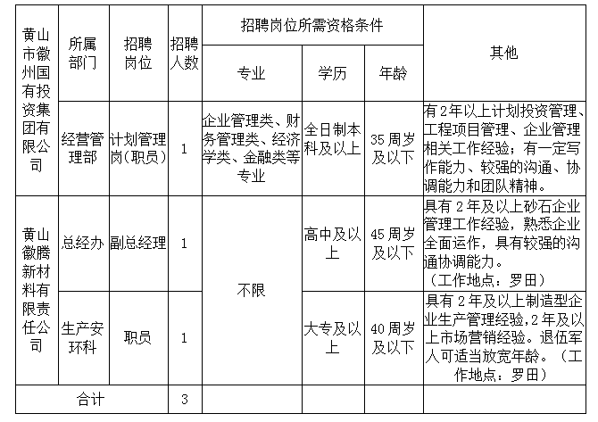 2021-09-14 20:46:58閱讀()黃山市徽州國(guó)有投資集團(tuán)有限公司徽州國(guó)投集團(tuán)及下屬子公司因工作需要,面向社會(huì)公開(kāi)招聘3名工作人員,其中集團(tuán)本部工作人員1名、徽騰新材料公司2名。現(xiàn)將有關(guān)招聘事宜公告如下: