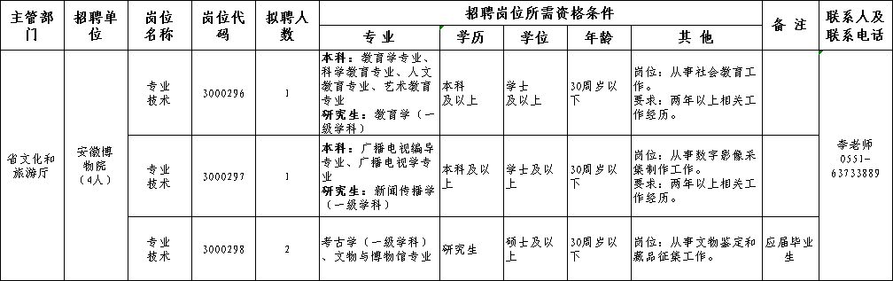 有關(guān)本次招聘崗位的具體問題,請(qǐng)向安徽博物院直接咨詢。