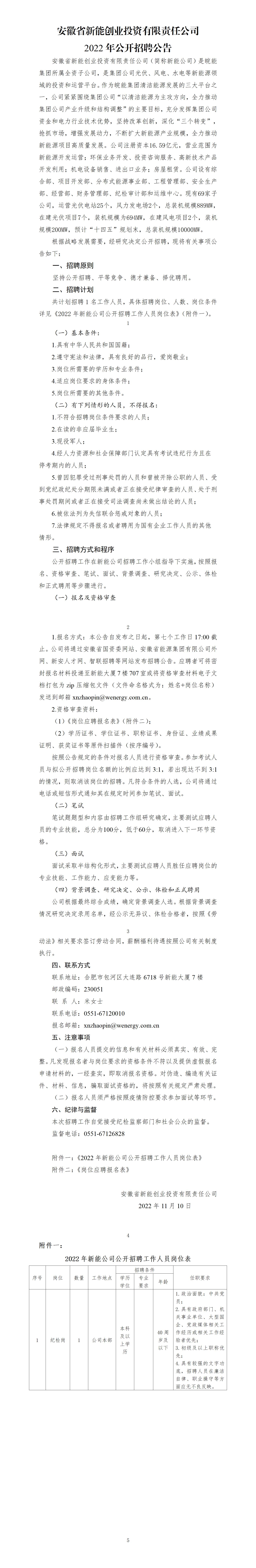2022年安徽省新能創(chuàng)業(yè)投資有限責(zé)任公司公開招聘公告