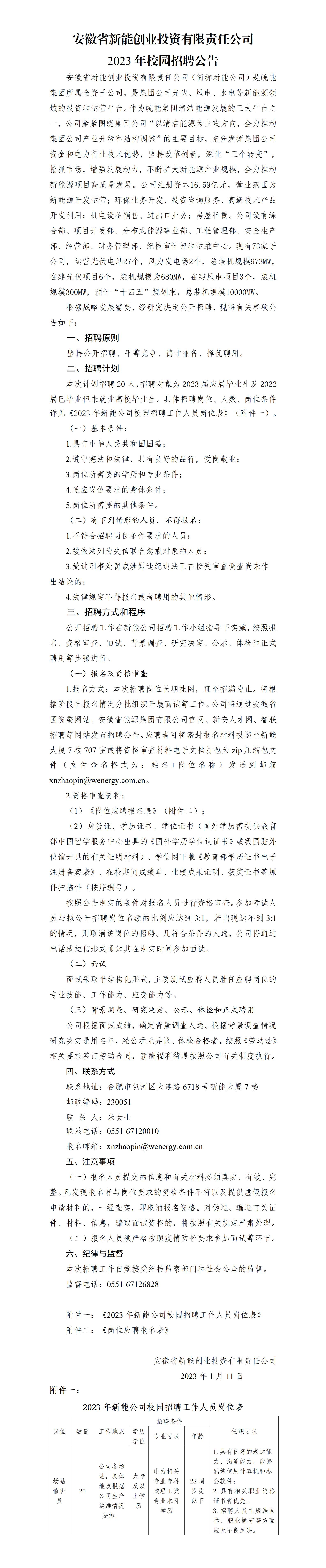 2023年安徽省新能創(chuàng)業(yè)投資有限責(zé)任公司校園招聘公告