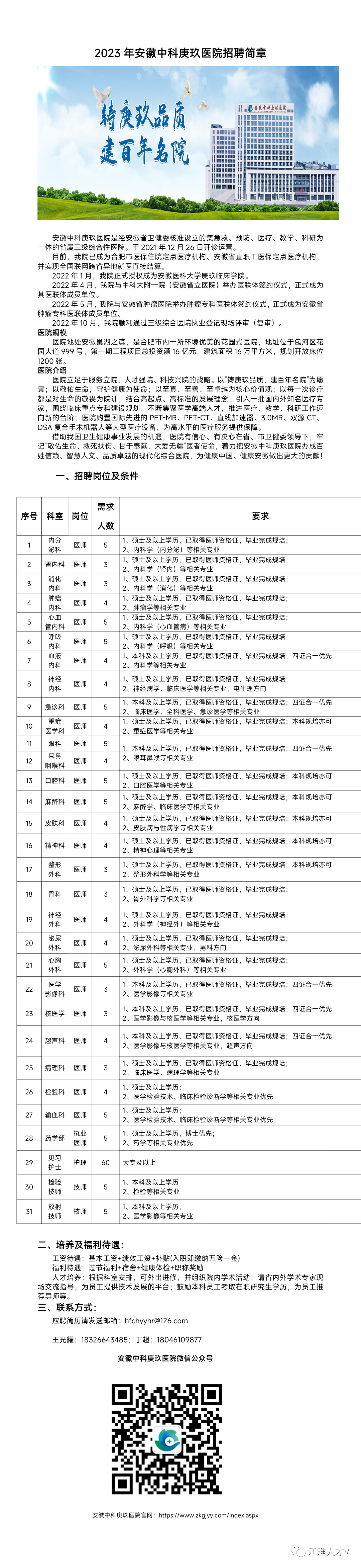 安徽中科庚玫醫(yī)院是經(jīng)安徽省衛(wèi)健委核準(zhǔn)設(shè)立的集急教、預(yù)防、醫(yī)療、教學(xué)、科研為一體的省屬三級(jí)綜合性醫(yī)院。于2021年12月26日開診運(yùn)營。